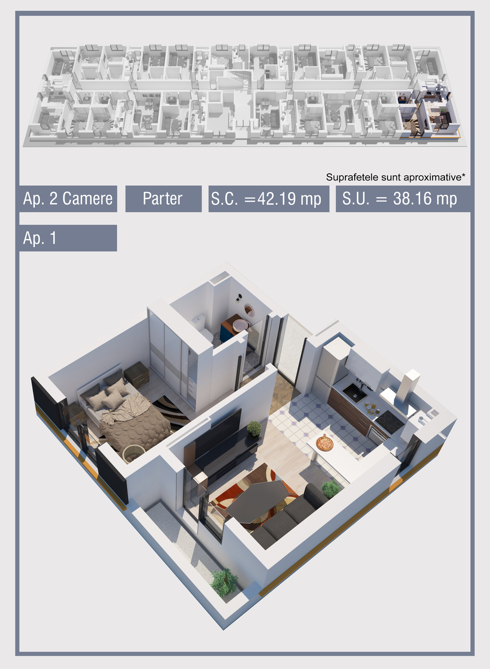 | 1 | Demisol | 2 | Da | 38.16 mp2 | - | - | - | Rezervat | Ap. 1 | - | Detalii |