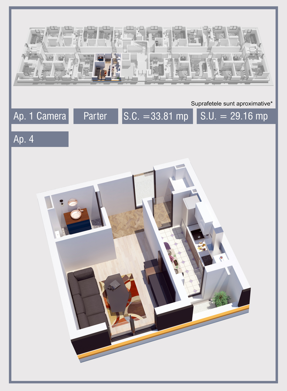 | 4 | Demisol | 1 | Da | 29.16 mp2 | - | - | - | Rezervat | Ap. 4 | - | Detalii |