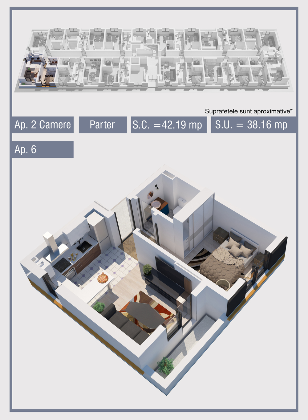 | 6 | Demisol | 2 | Da | 38.16 mp2 | - | - | - | Rezervat | Ap. 6 | - | Detalii |