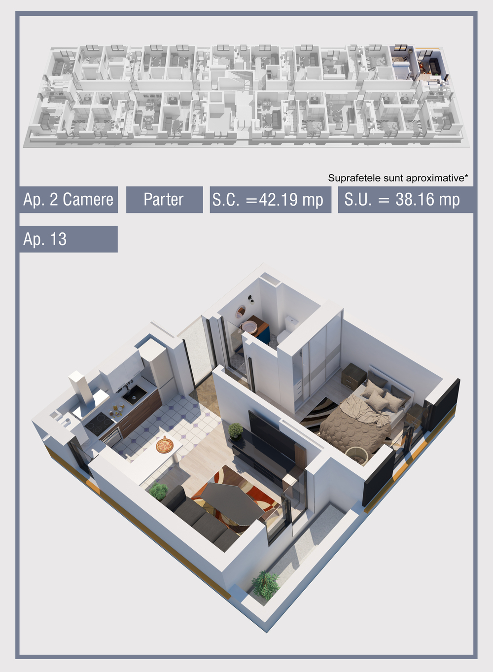 | 13 | Demisol | 2 | Da | 38.16 mp2 | - | - | - | Rezervat | Ap. 13 | - | Detalii |