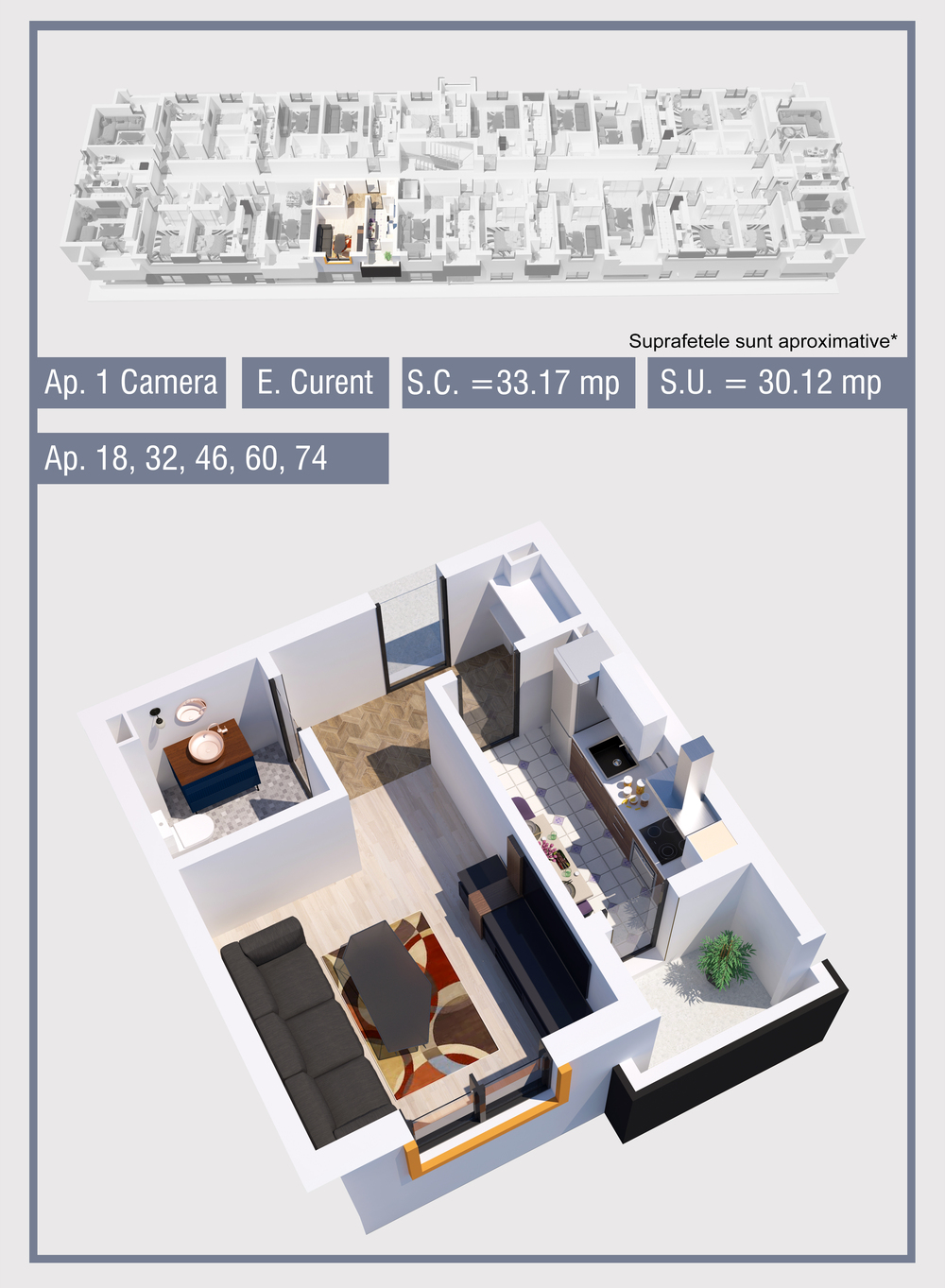 | 18 | Parter | 1 | Da | 30.12 mp2 | - | - | - | Rezervat | Ap. 18 | - | Detalii |